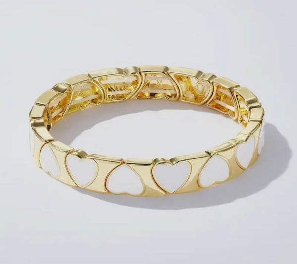 Bracelet doré élastique cœurs couleurs